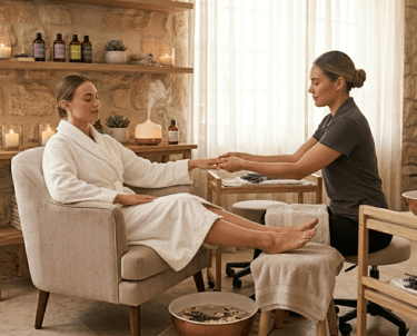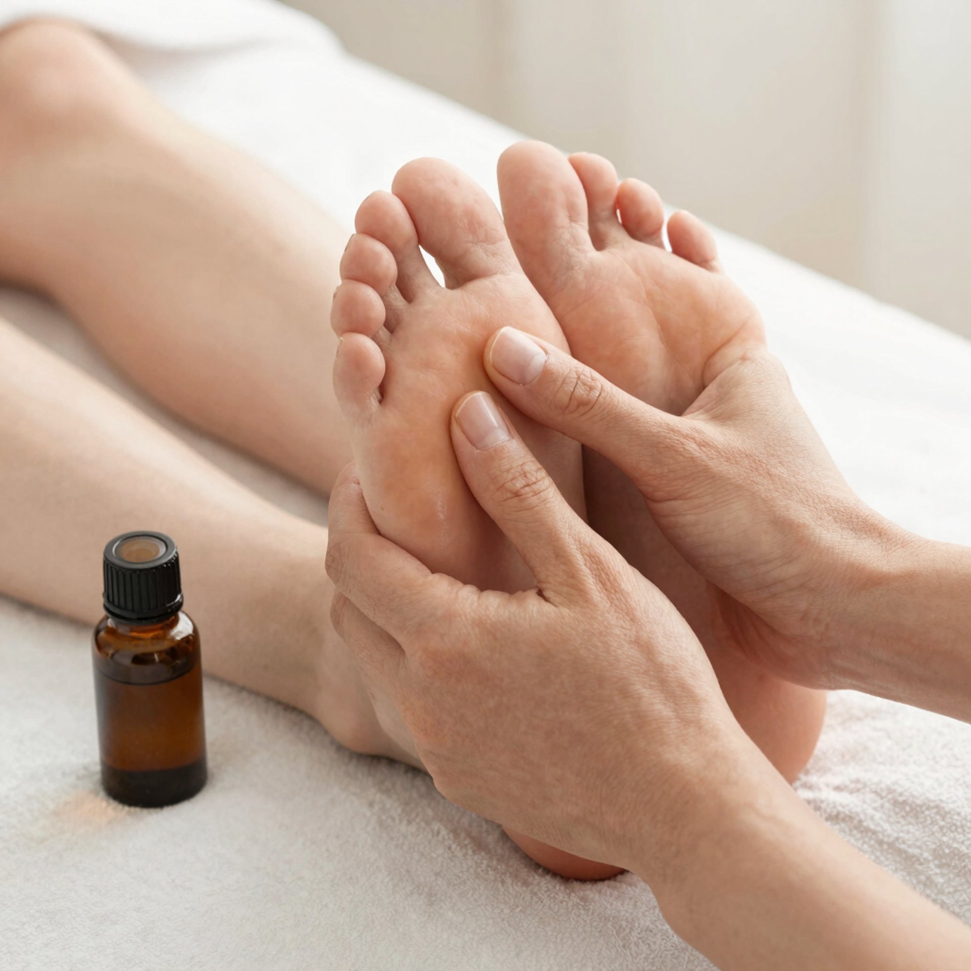 All essential oils are diluted and skin-tested. We avoid peppermint and citrus for diabetic clients with neuropathy. Lavender and chamomile are always available as gentle, safe options. Please inform us of any allergies or scent sensitivities before we begin.